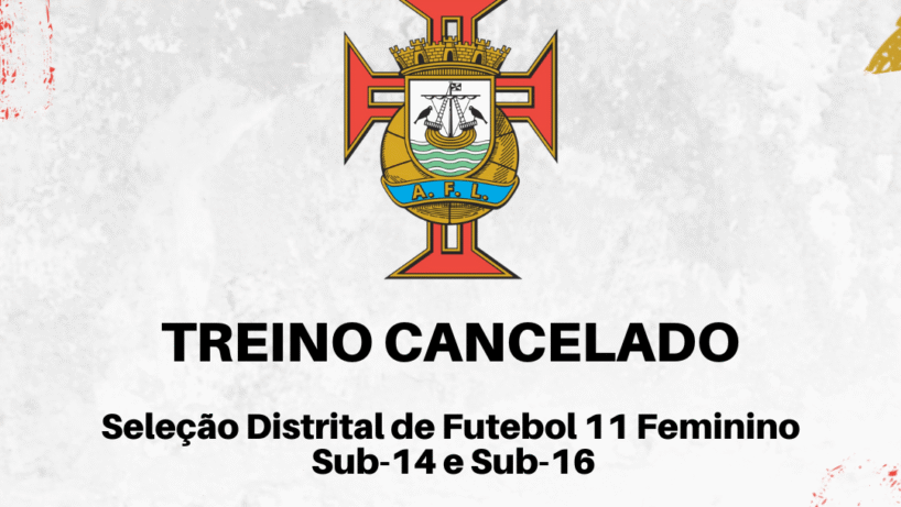 A Associação de Futebol de Lisboa informa que os treinos de hoje, dia 28 de outubro, terça-feira, das Seleções Distritais de Futebol 11 Feminino Sub-14 e Sub-16 foram cancelados, devido às condições meteorológicas adversas registadas em Lisboa.