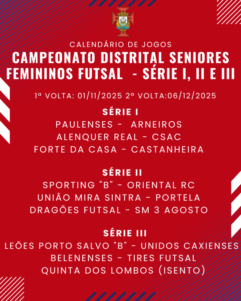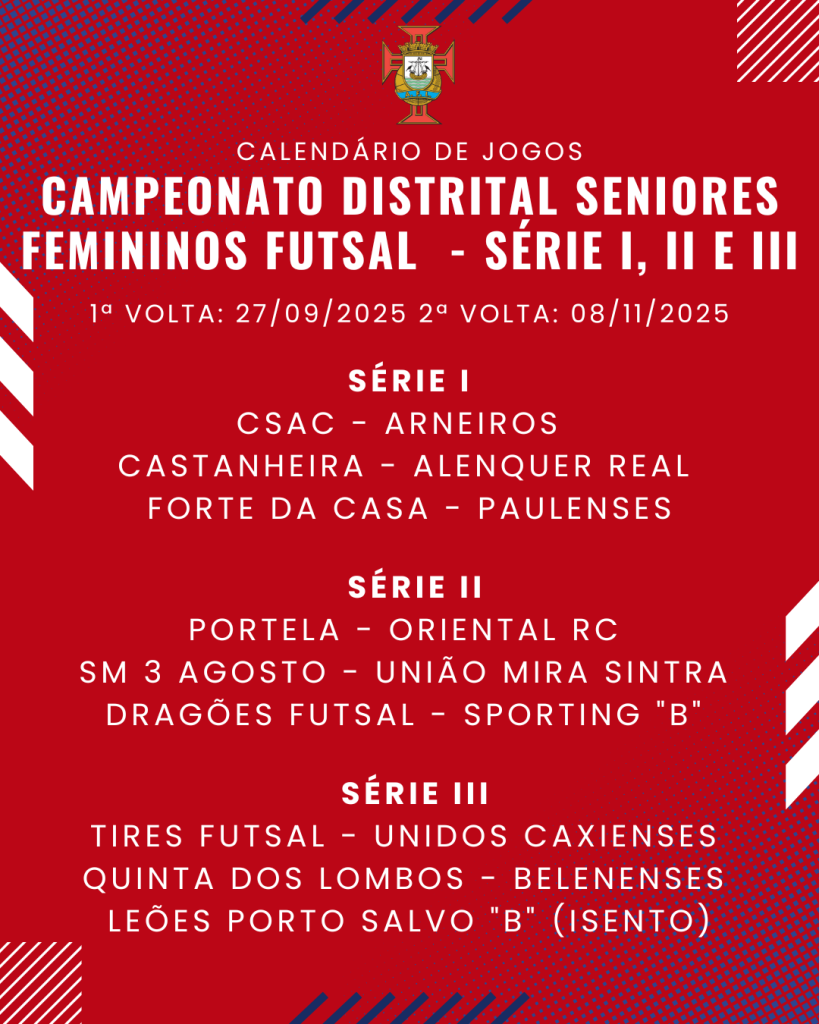 Calendário de jogos – Futsal Distrital Seniores Feminino – Série I,II e III