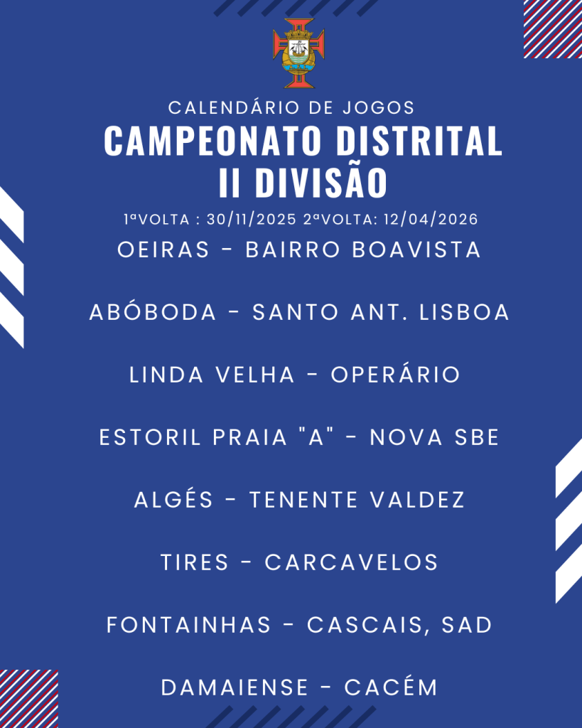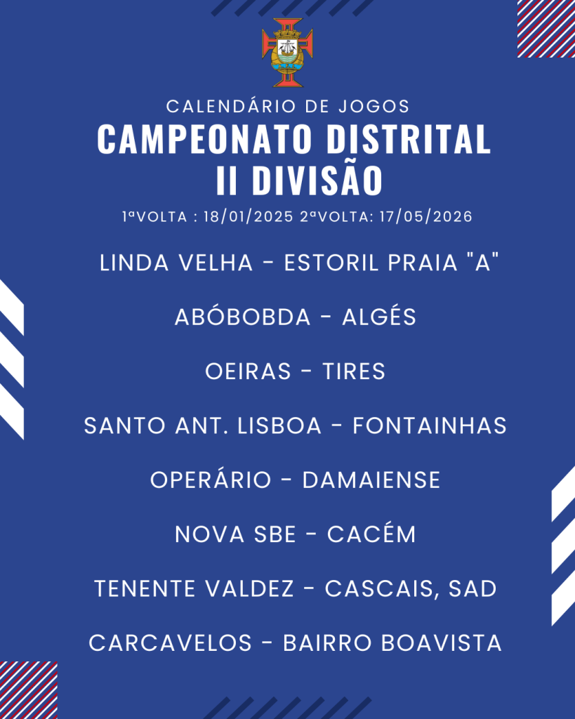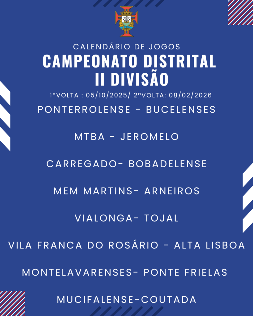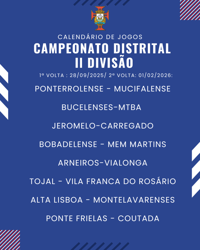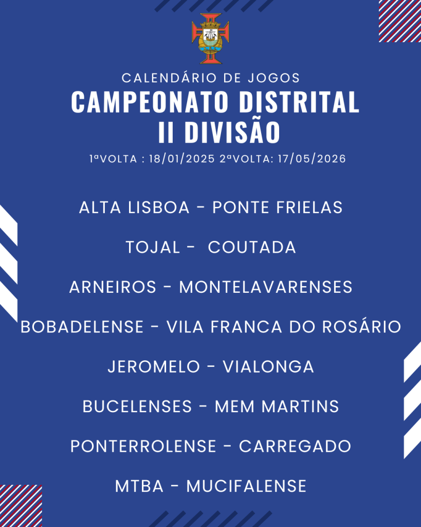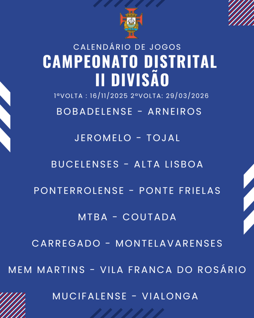 Consulta aqui o calendário completo dos jogos do Campeonato Distrital da II Divisão de Futebol – Série I e II: