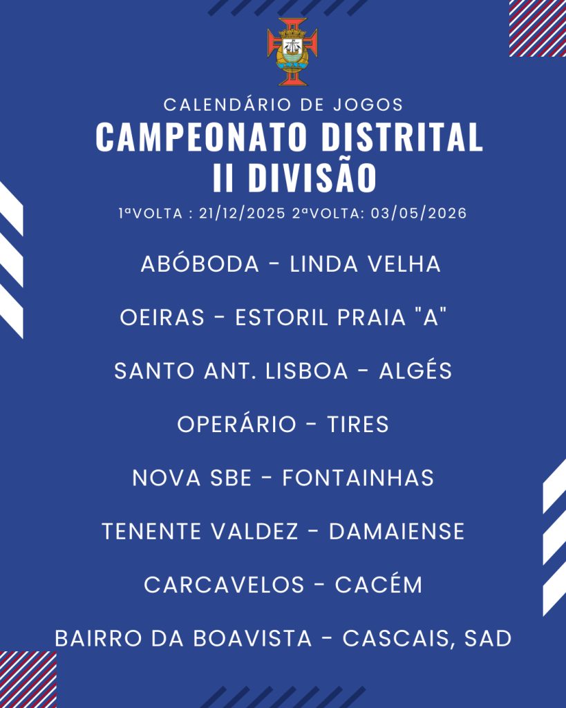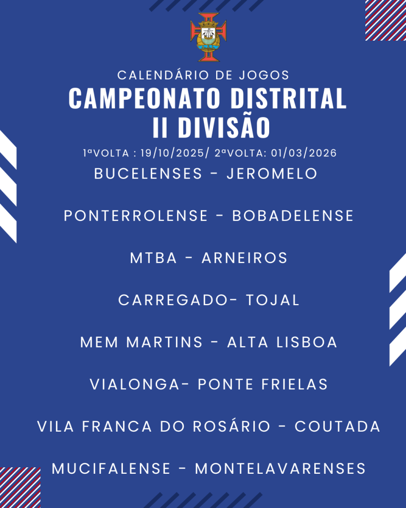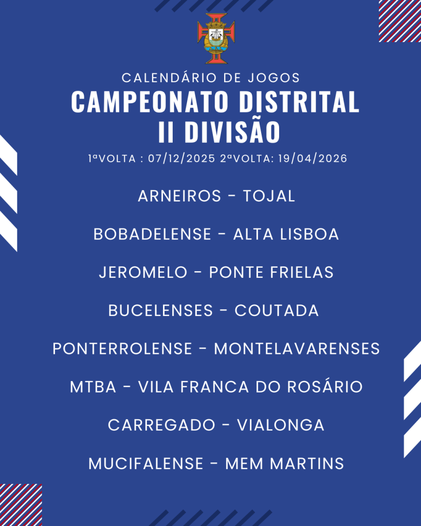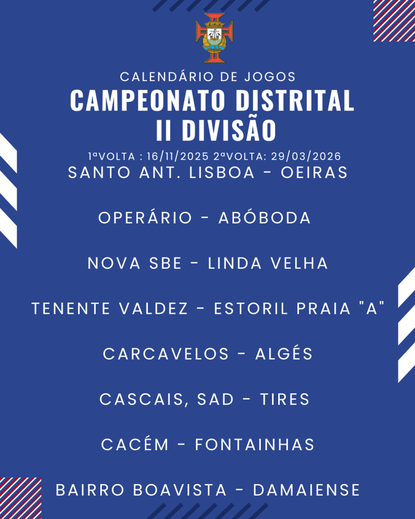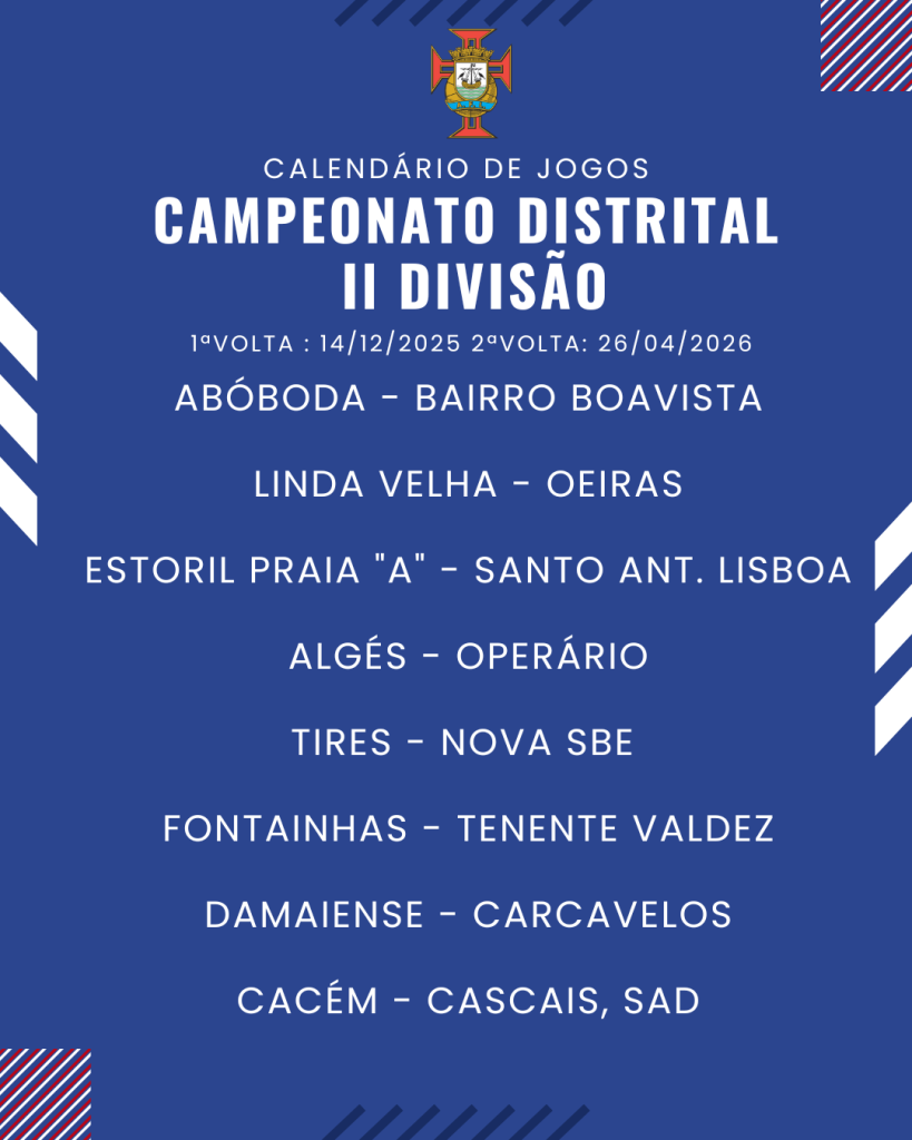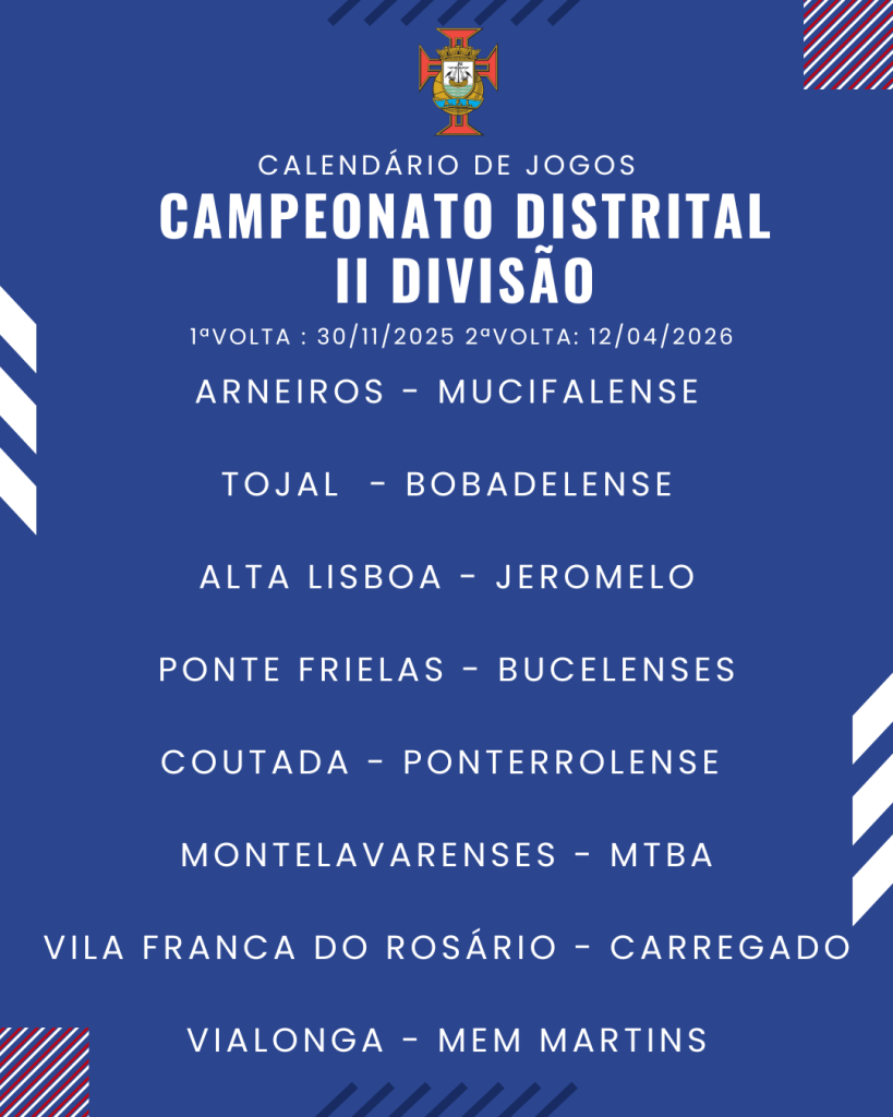 Consulta aqui o calendário completo dos jogos do Campeonato Distrital da II Divisão de Futebol – Série I e II: