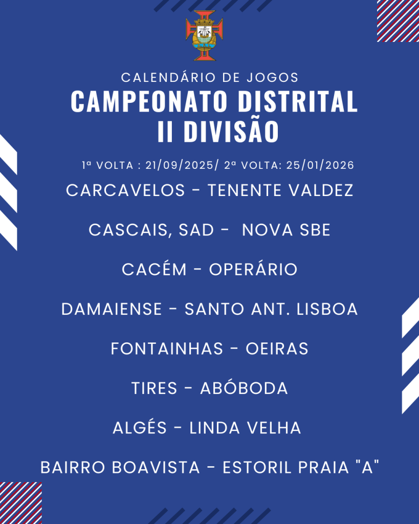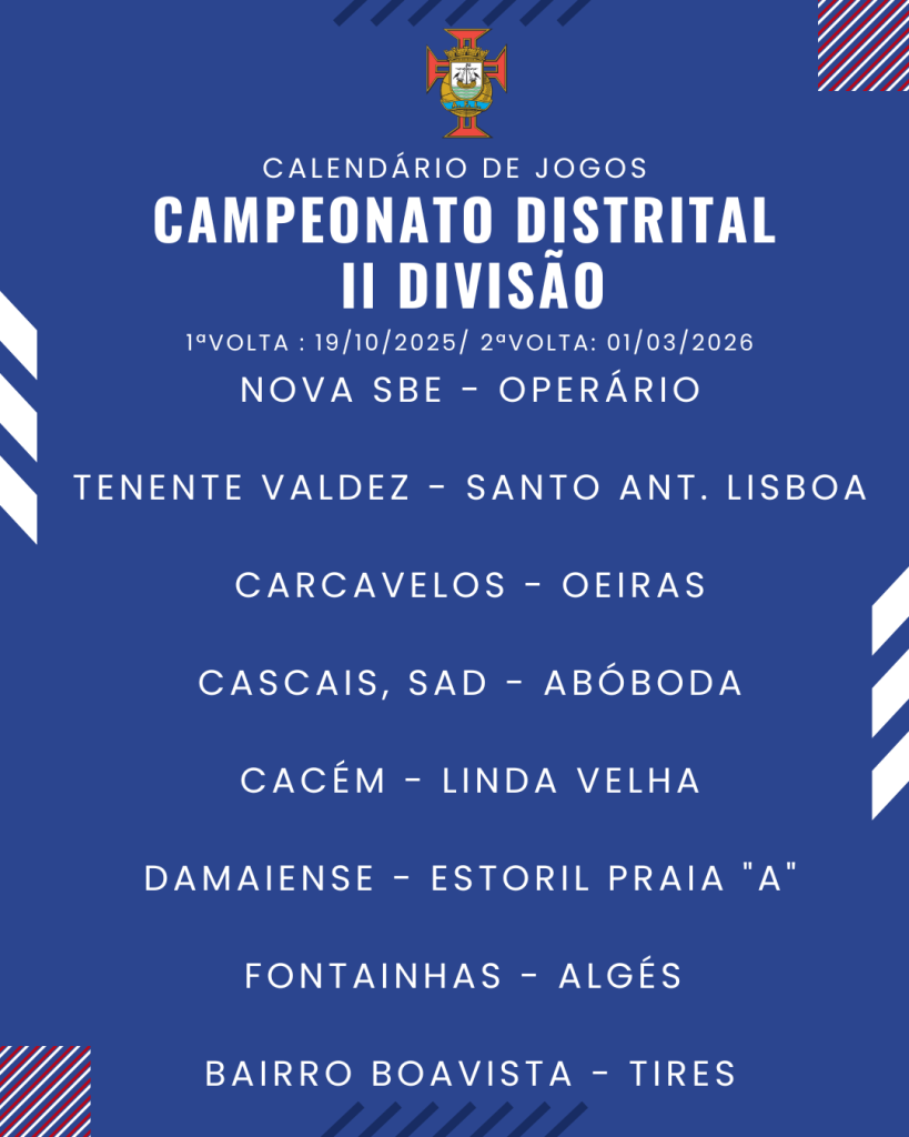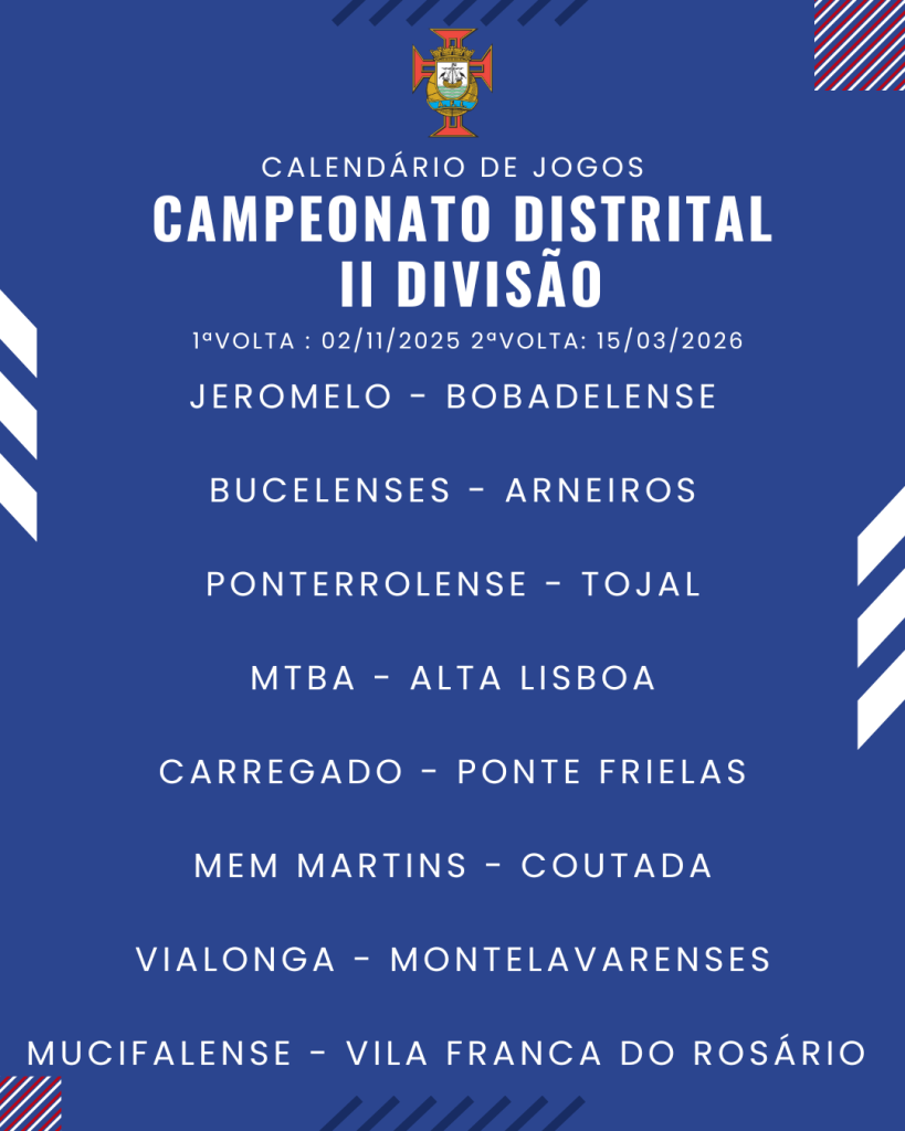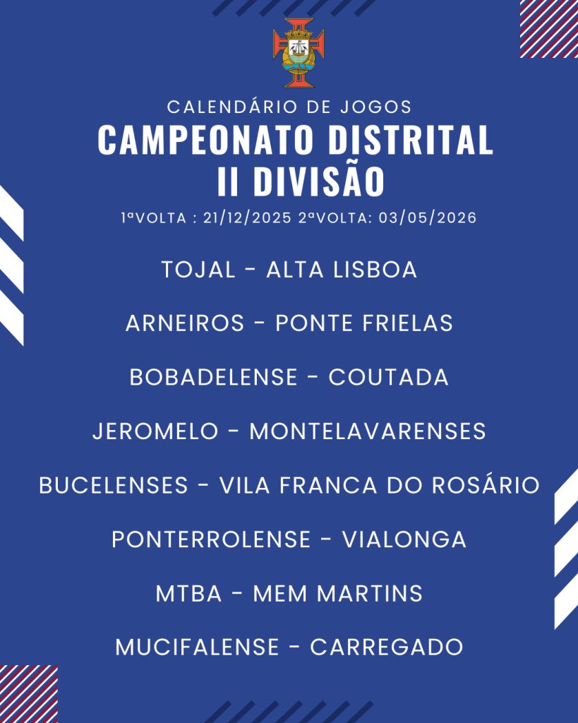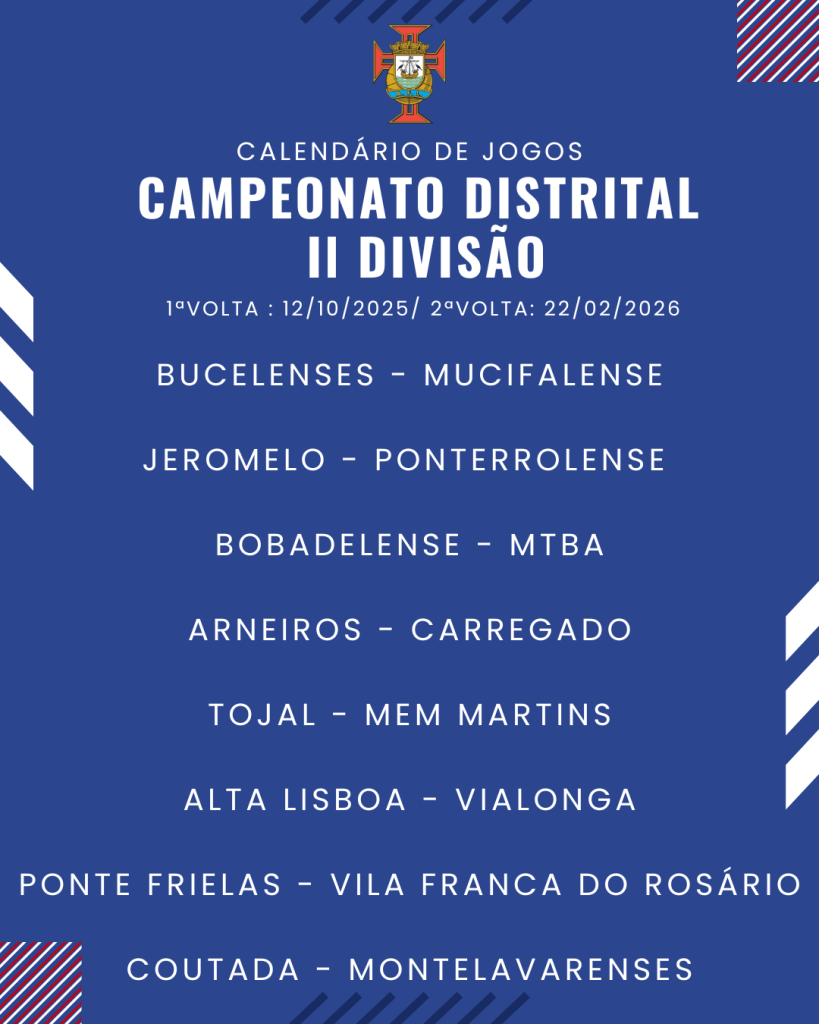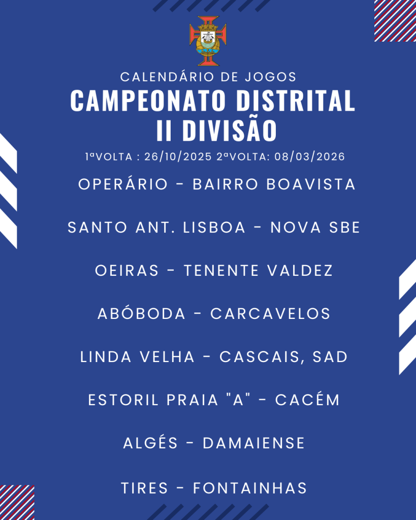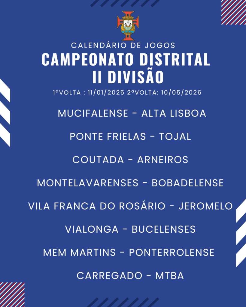 Consulta aqui o calendário completo dos jogos do Campeonato Distrital da II Divisão de Futebol – Série I e II: