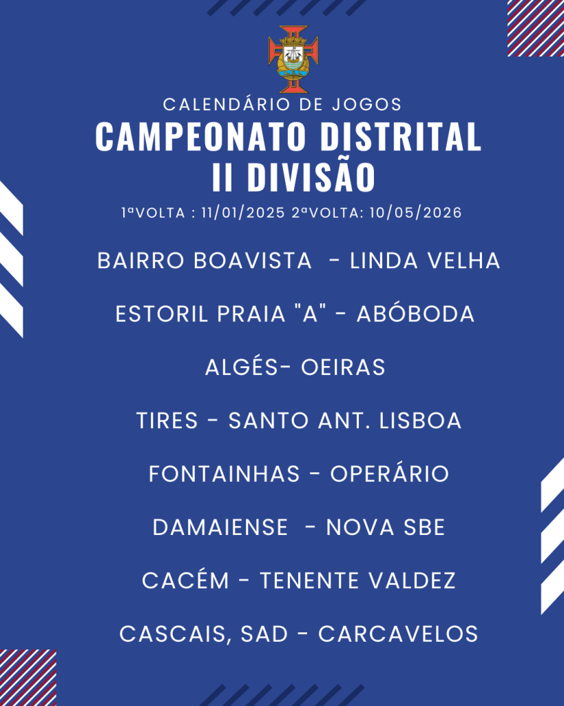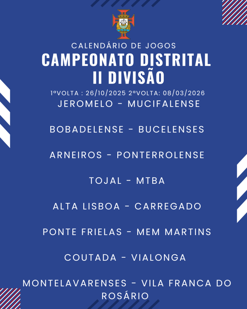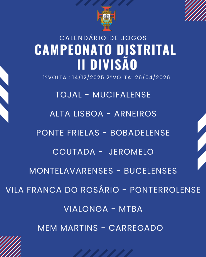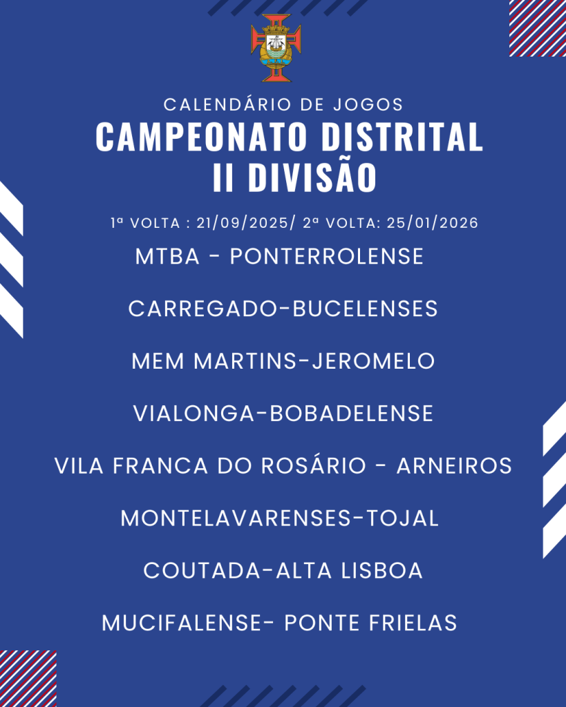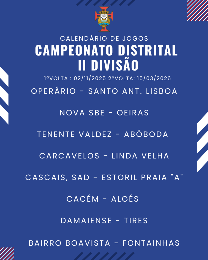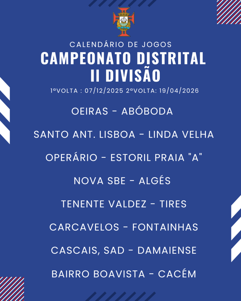 Consulta aqui o calendário completo dos jogos do Campeonato Distrital da II Divisão de Futebol – Série I e II: