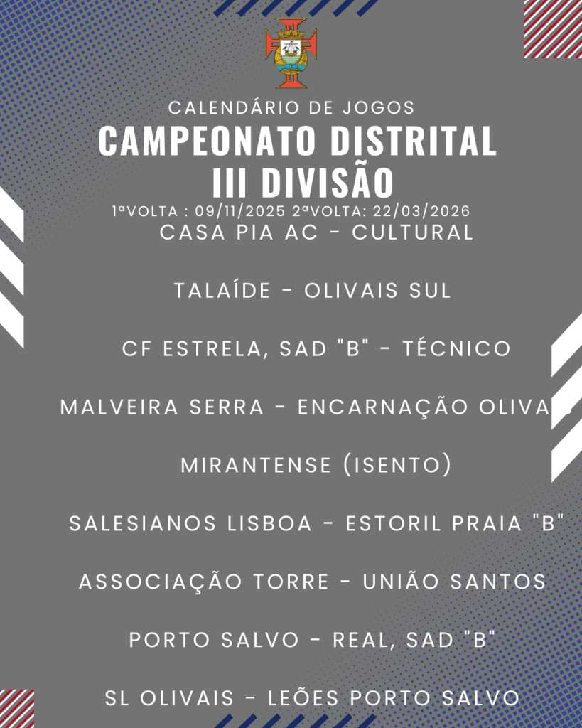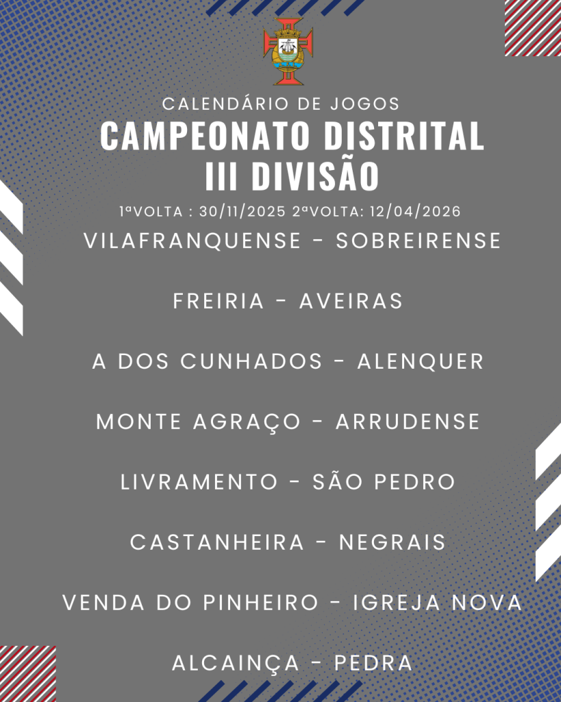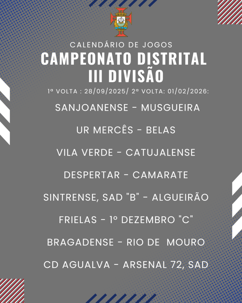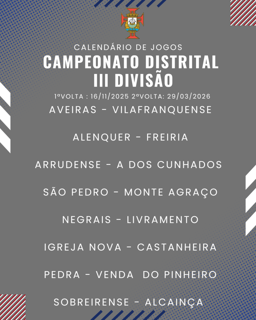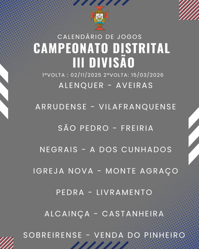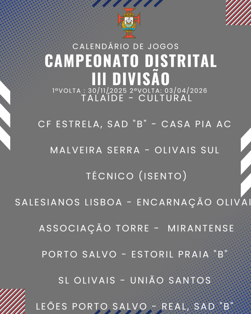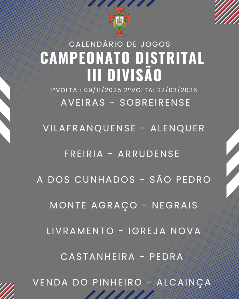 Consulta aqui o calendário completo dos jogos do Campeonato Distrital da III Divisão de Futebol – Série I, II e III: