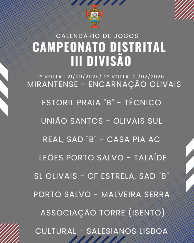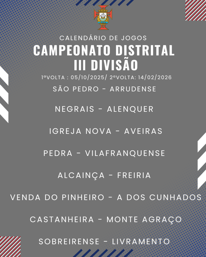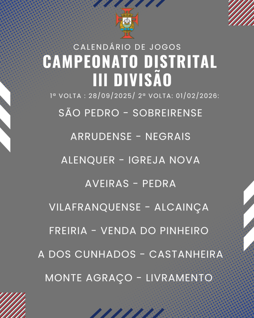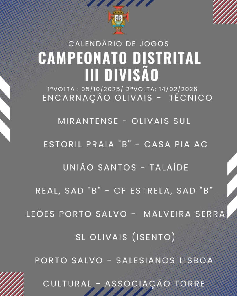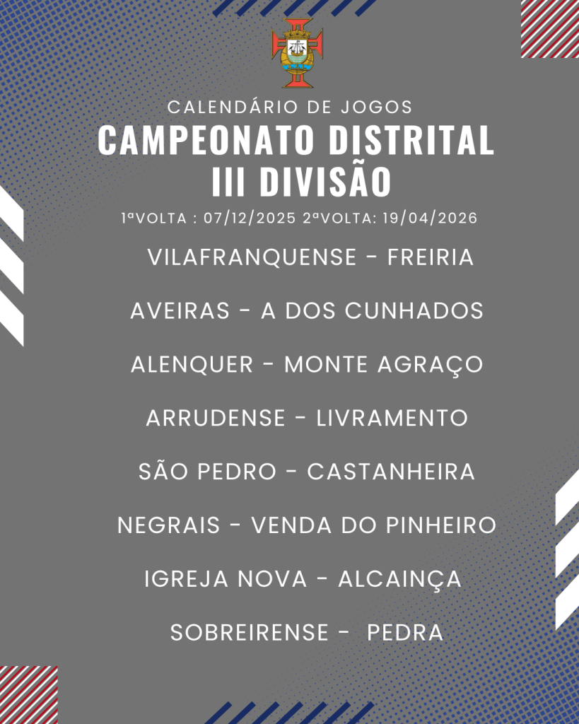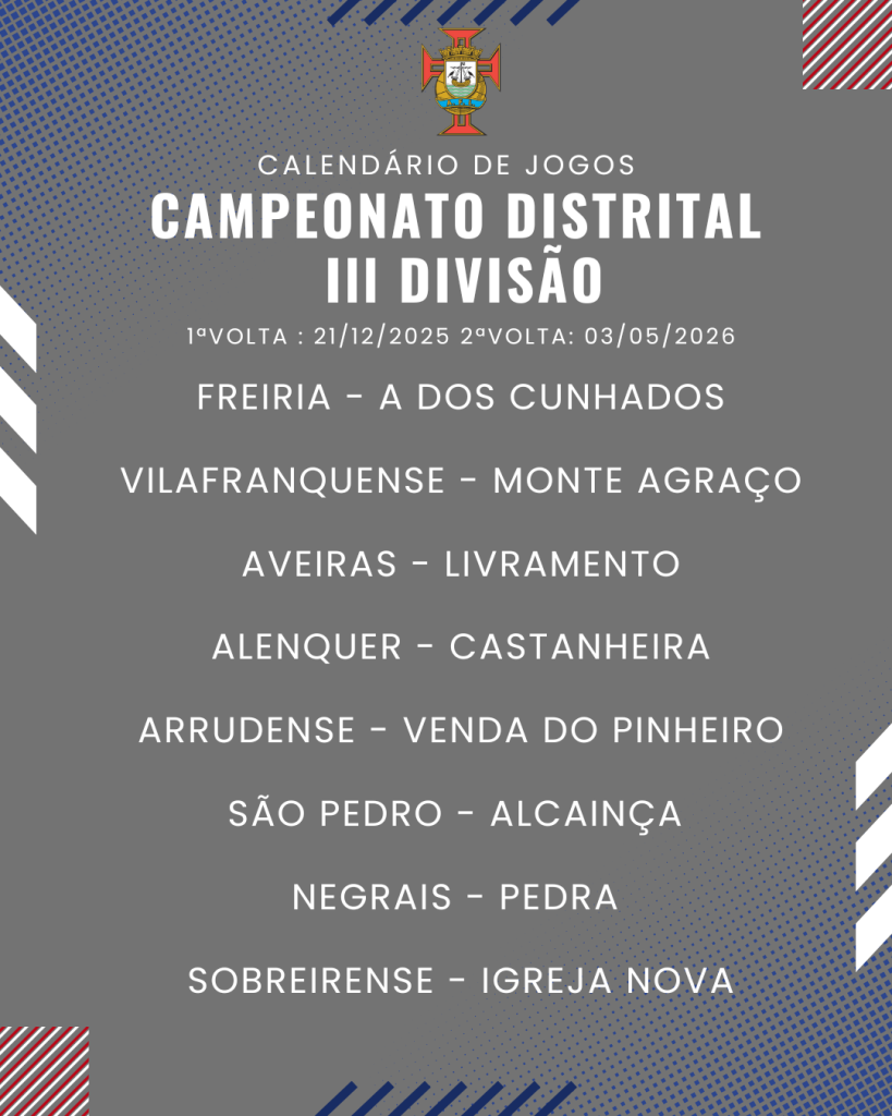 Consulta aqui o calendário completo dos jogos do Campeonato Distrital da III Divisão de Futebol – Série I, II e III:
