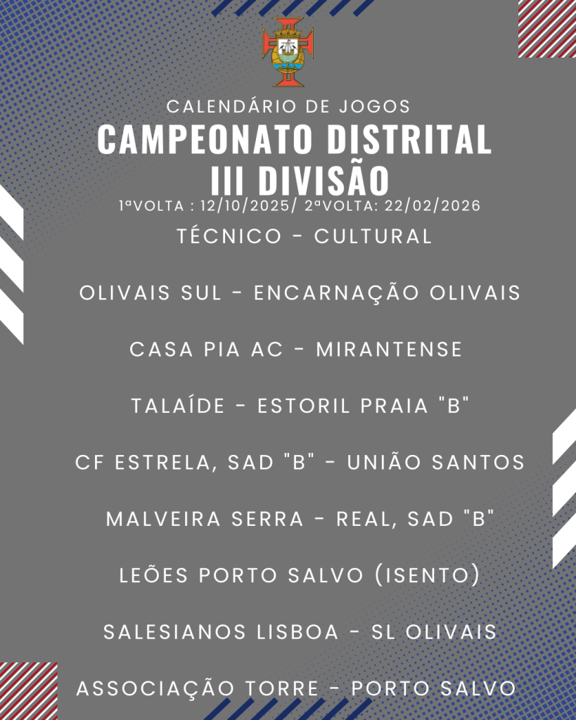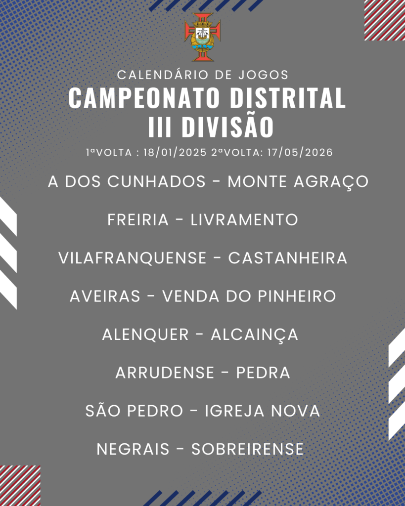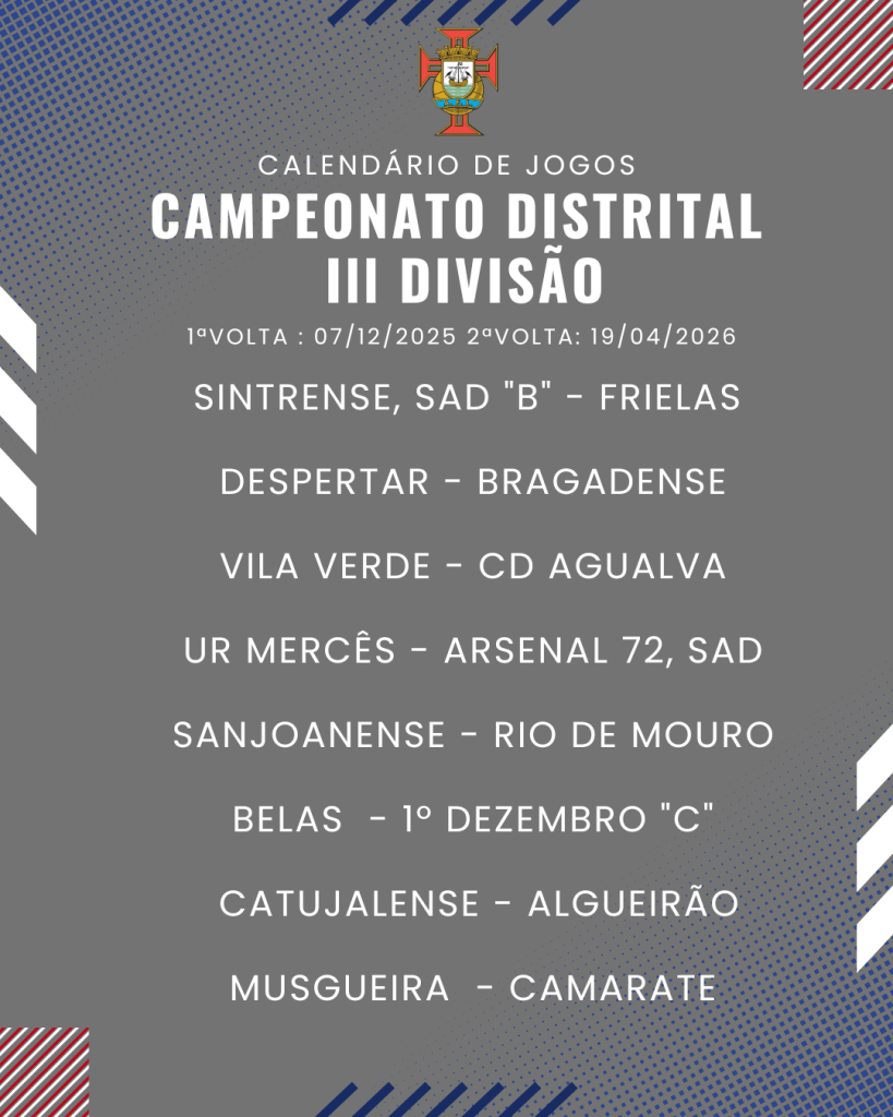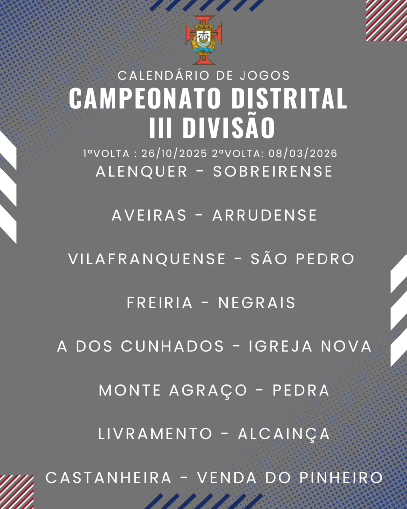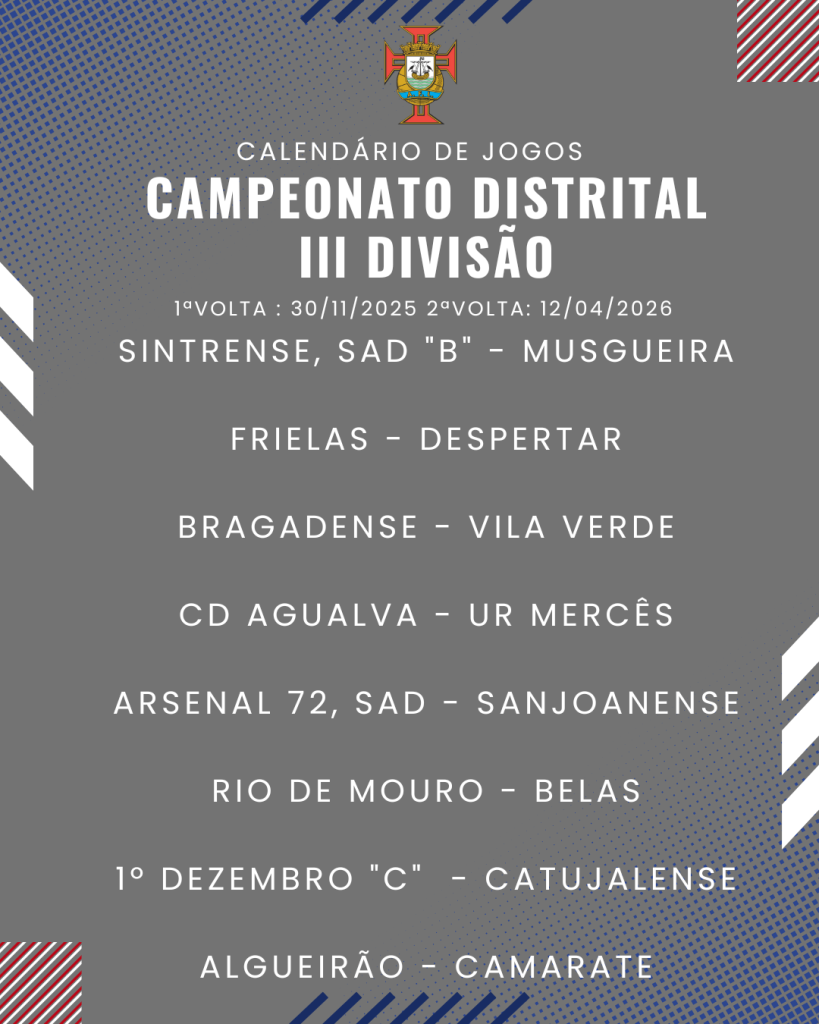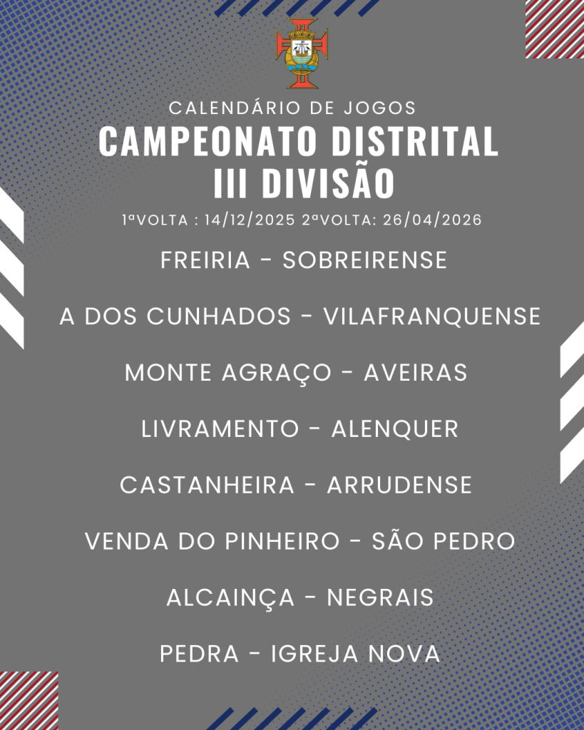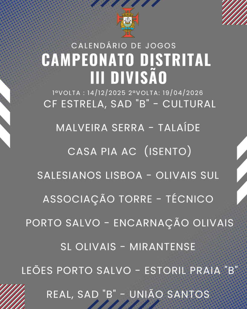 Consulta aqui o calendário completo dos jogos do Campeonato Distrital da III Divisão de Futebol – Série I, II e III: