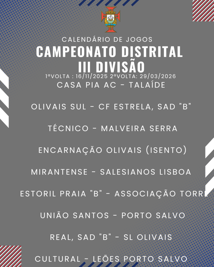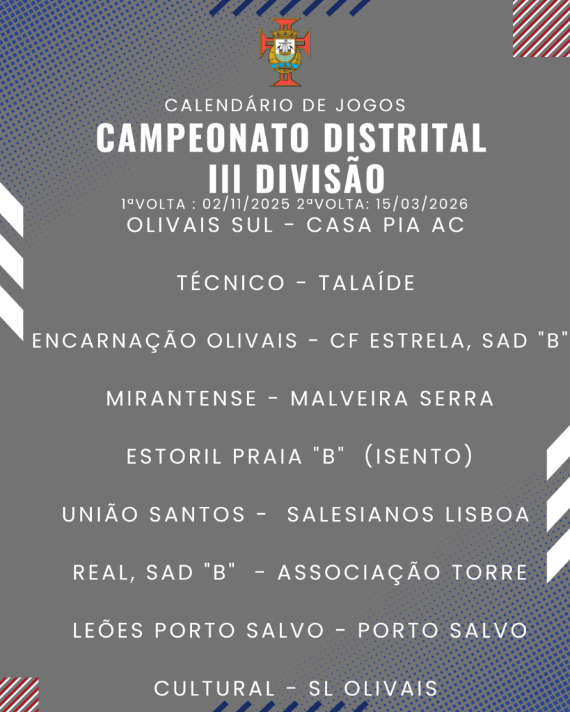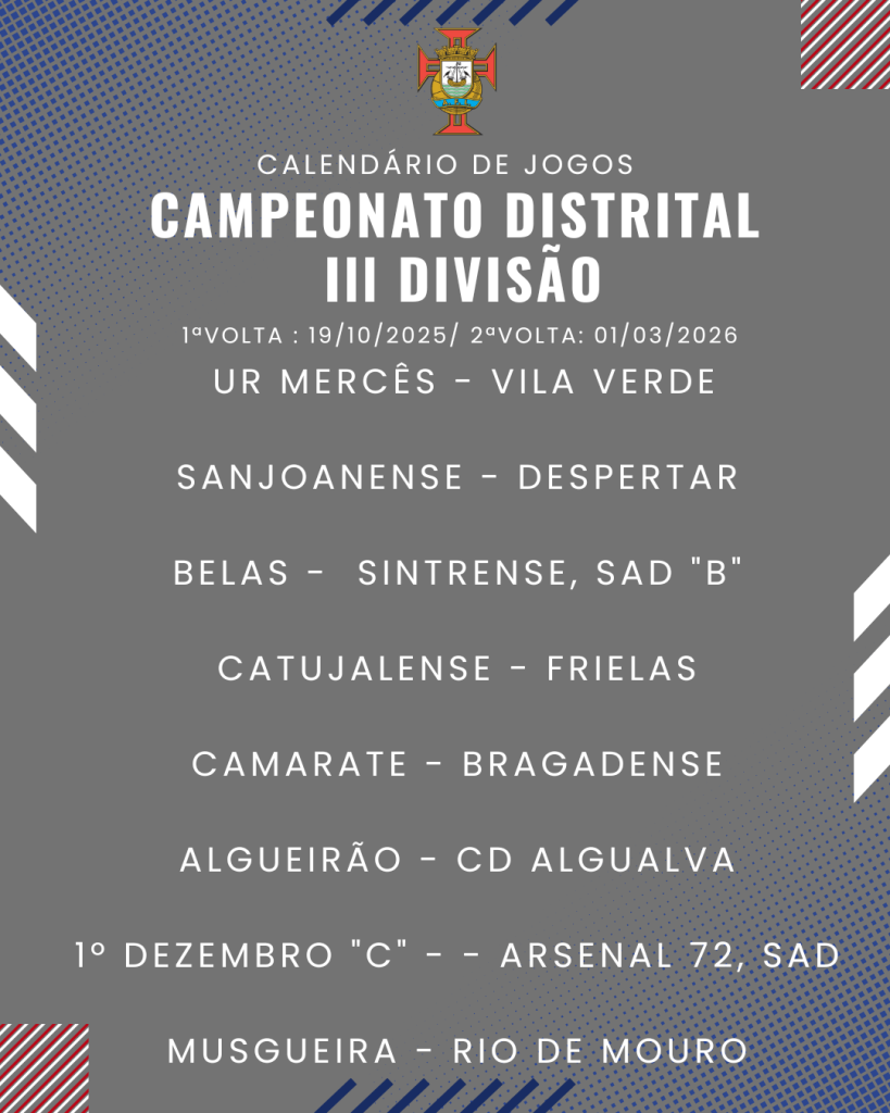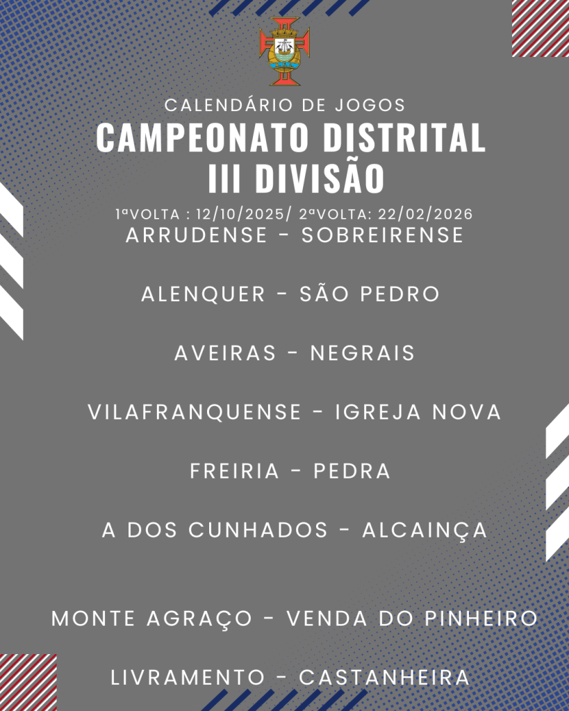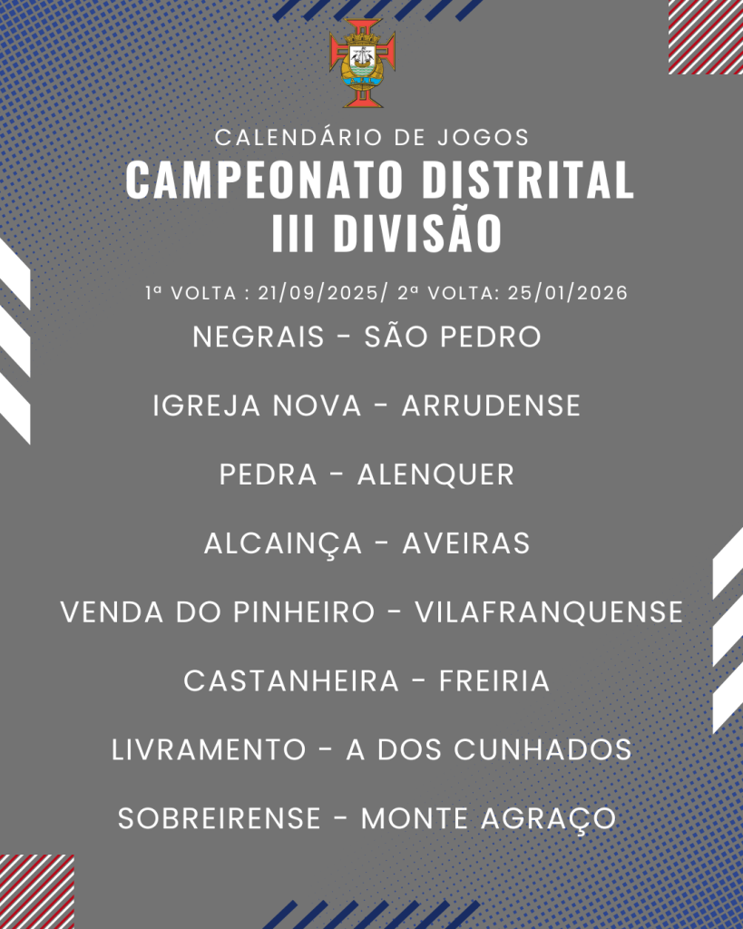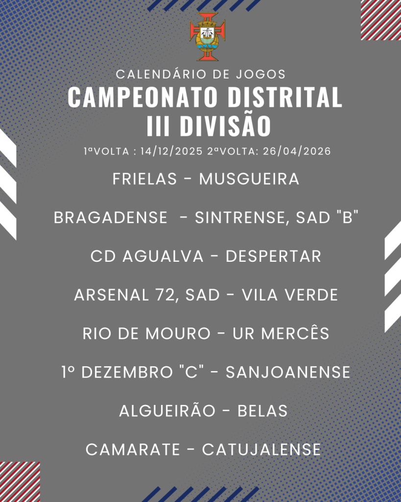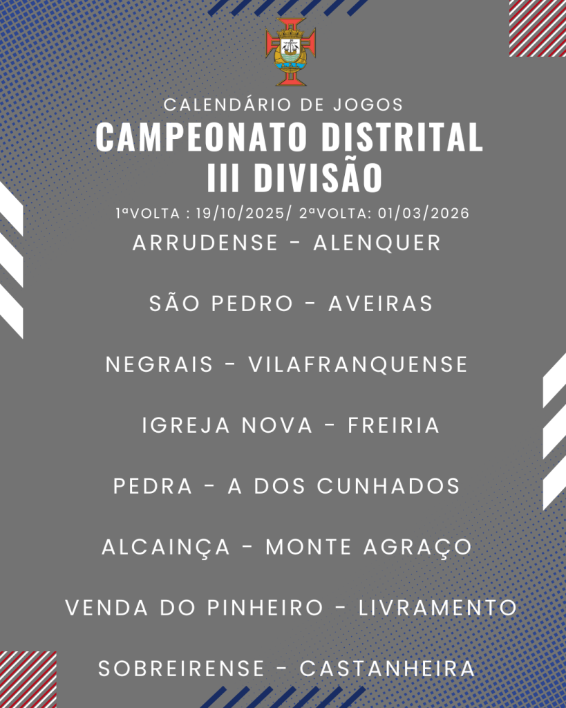 Consulta aqui o calendário completo dos jogos do Campeonato Distrital da III Divisão de Futebol – Série I, II e III: