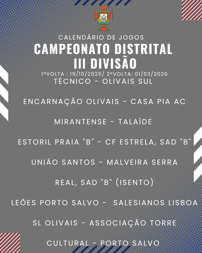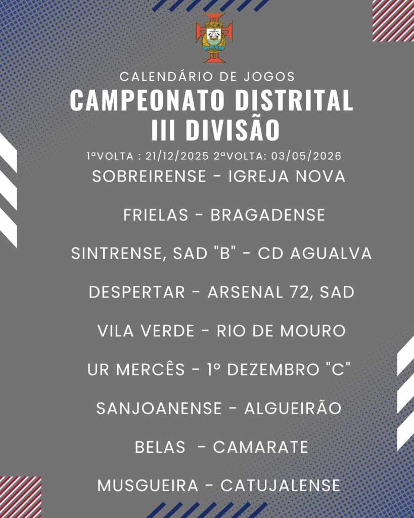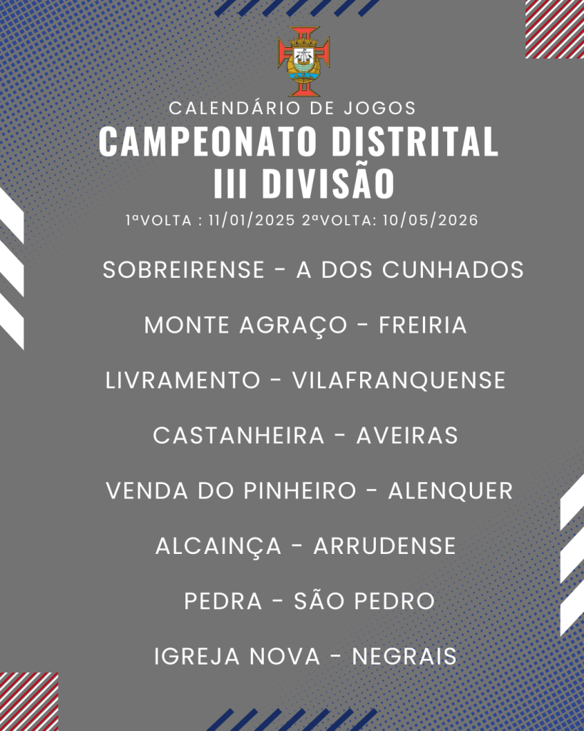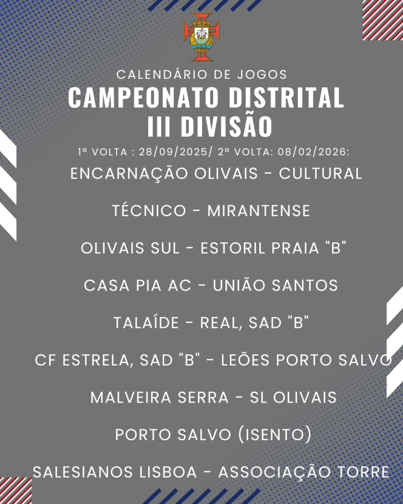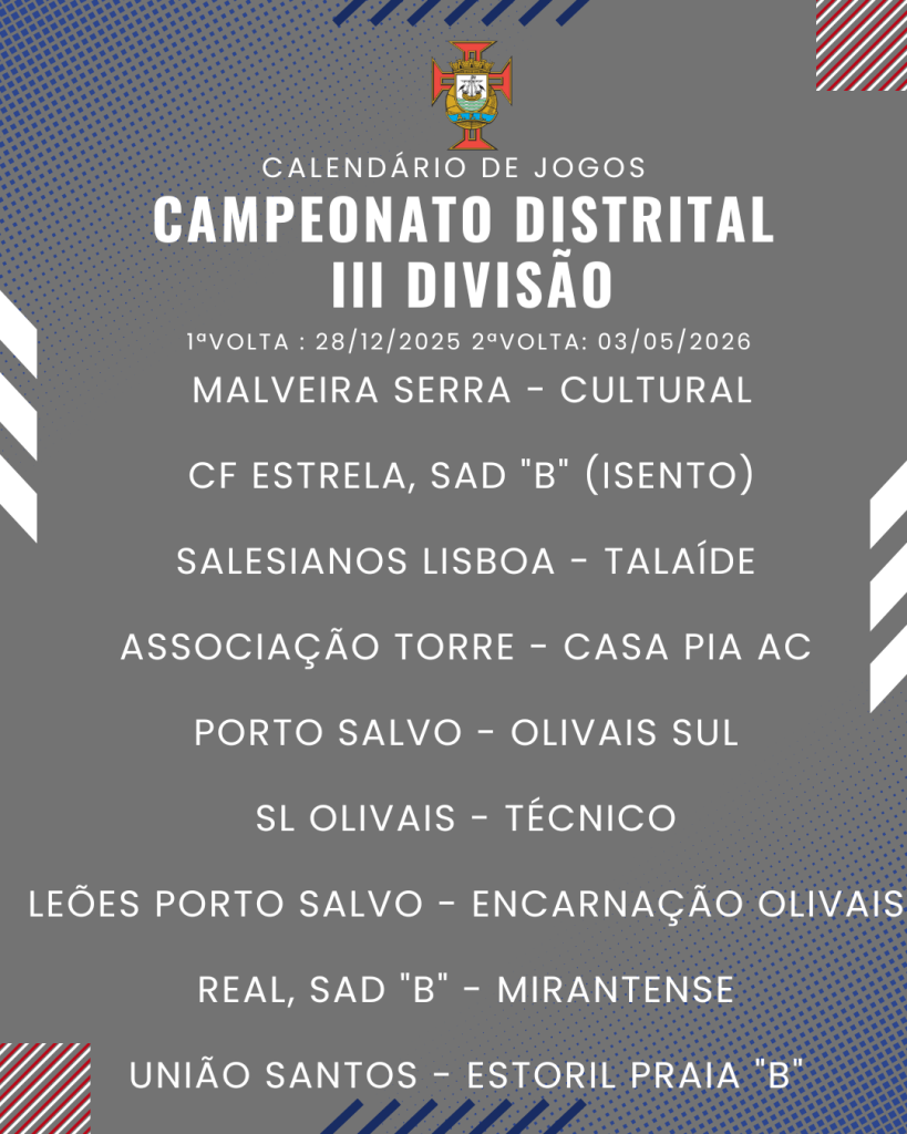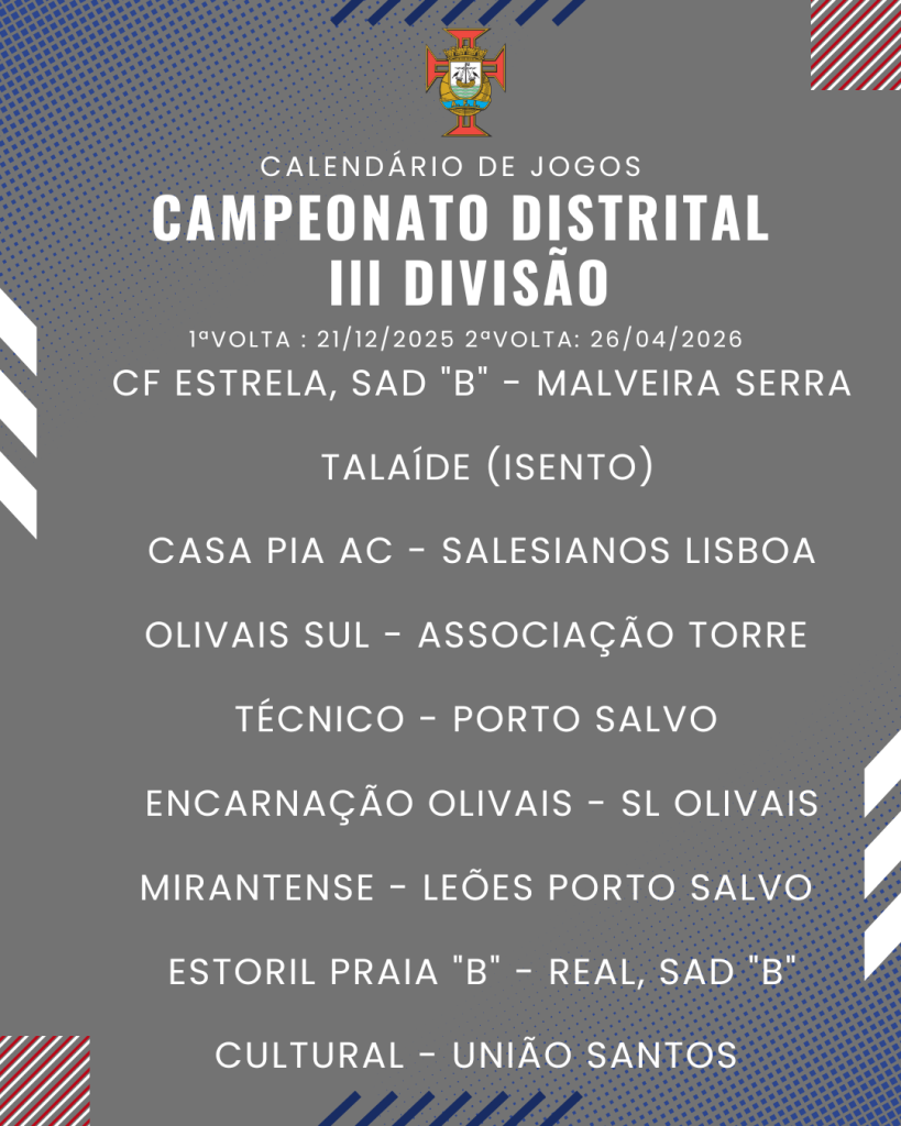 Consulta aqui o calendário completo dos jogos do Campeonato Distrital da III Divisão de Futebol – Série I, II e III: