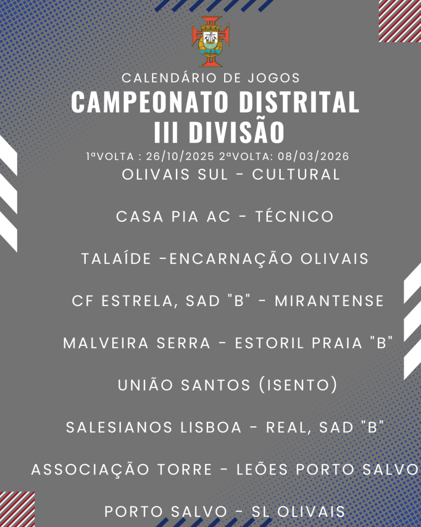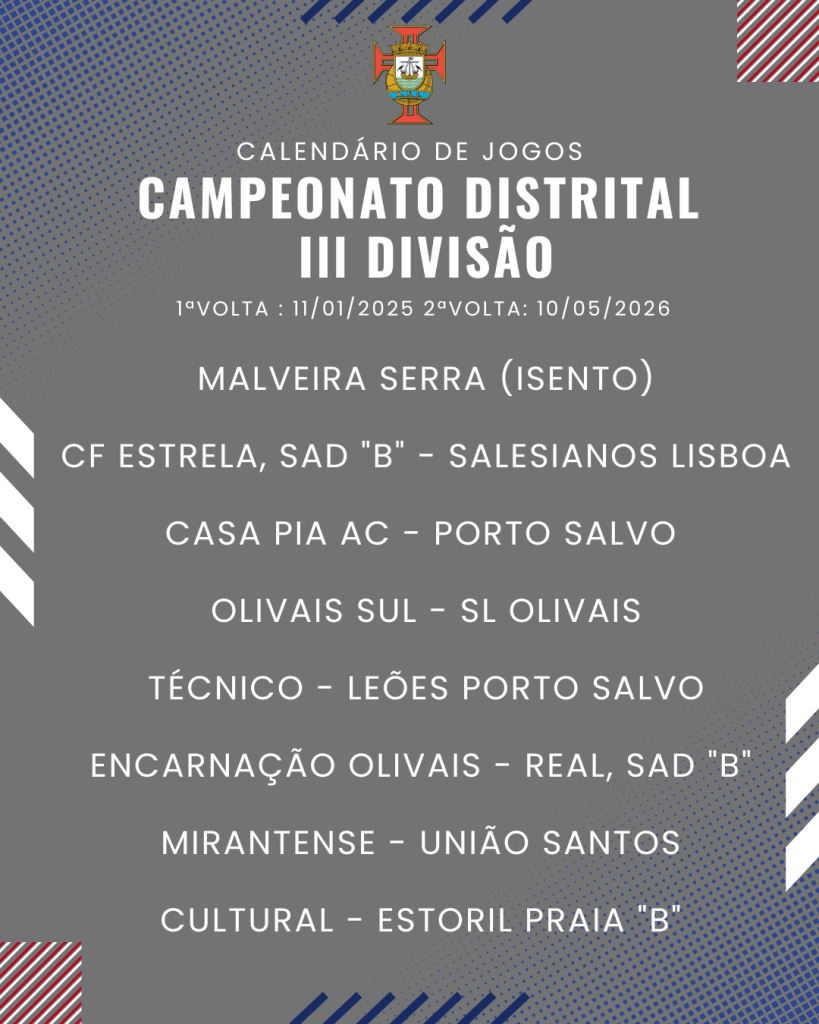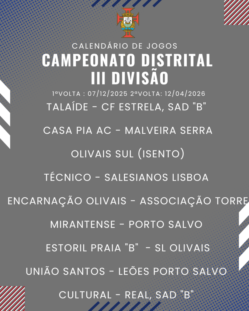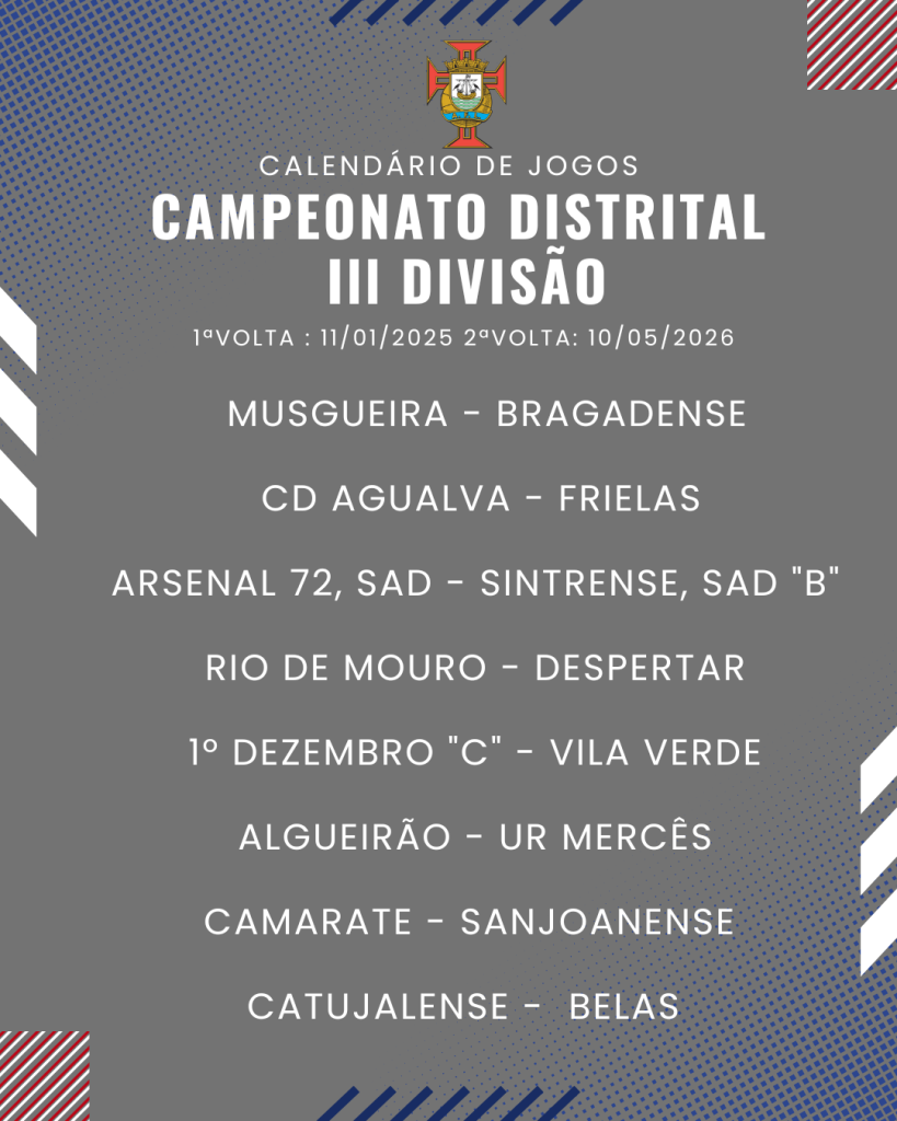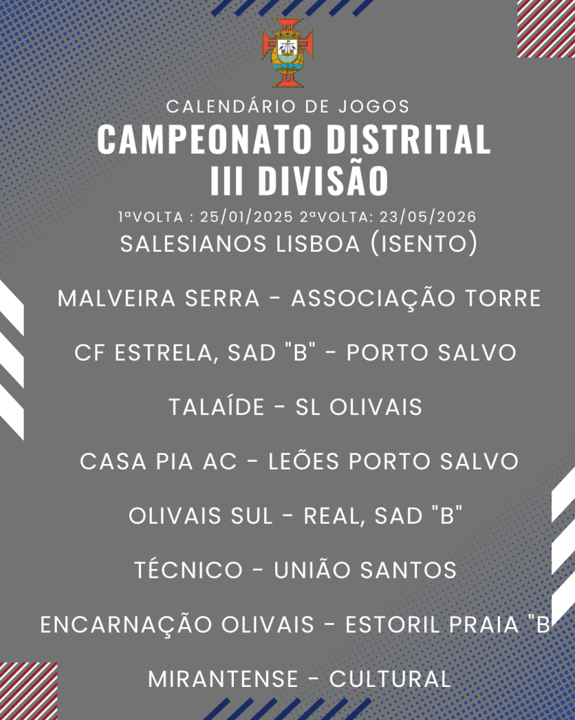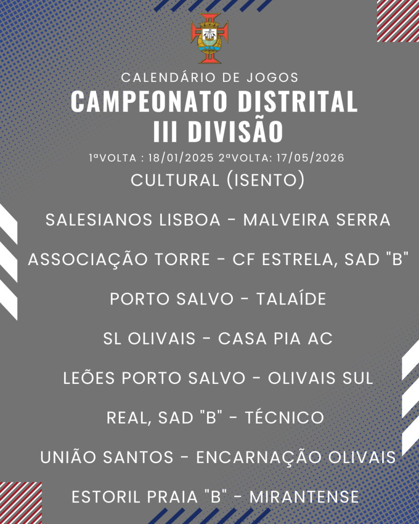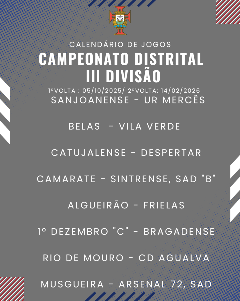 Consulta aqui o calendário completo dos jogos do Campeonato Distrital da III Divisão de Futebol – Série I, II e III: