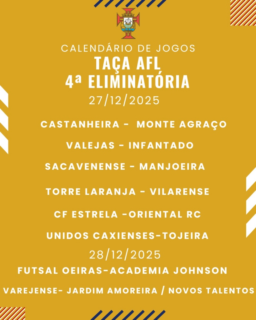 Já são conhecidos os jogos da 𝟰ª 𝗲𝗹𝗶𝗺𝗶𝗻𝗮𝘁𝗼́𝗿𝗶𝗮 𝗱𝗮 𝗧𝗮𝗰̧𝗮 𝗔𝗙𝗟 𝗦𝗲𝗻𝗶𝗼𝗿𝗲𝘀 𝗙𝘂𝘁𝘀𝗮𝗹 a decorrer nos próximos 𝗱𝗶𝗮𝘀 𝟮𝟳 𝗲 𝟮𝟴 𝗱𝗲 𝗱𝗲𝘇𝗲𝗺𝗯𝗿𝗼.