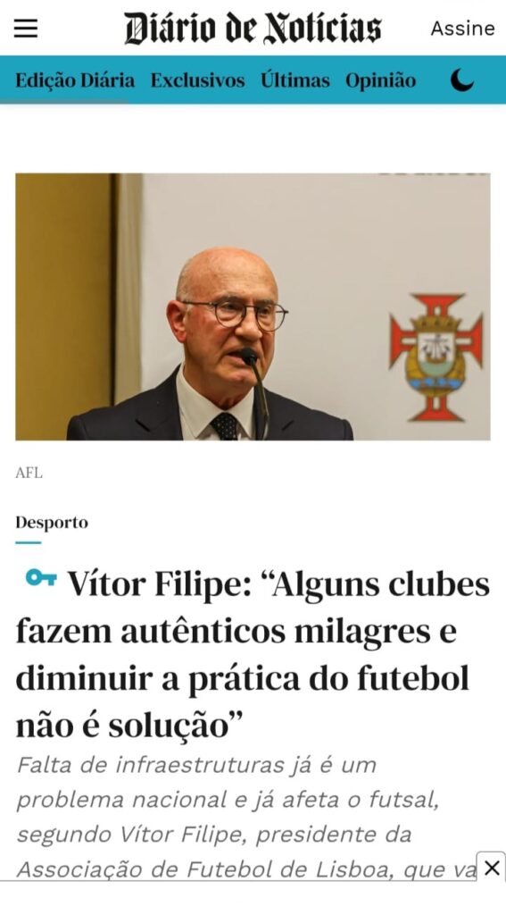 Na edição, desta segunda-feira, dia 18 de agosto, o presidente da Direção da Associação de Futebol de Lisboa deu uma entrevista ao jornal “Diário de Notícias”, abordando o tema sobre a falta de infraestruturas a nível nacional para a prática de futebol e , também, de futsal. O presidente da Associação de Futebol de Lisboa, […]