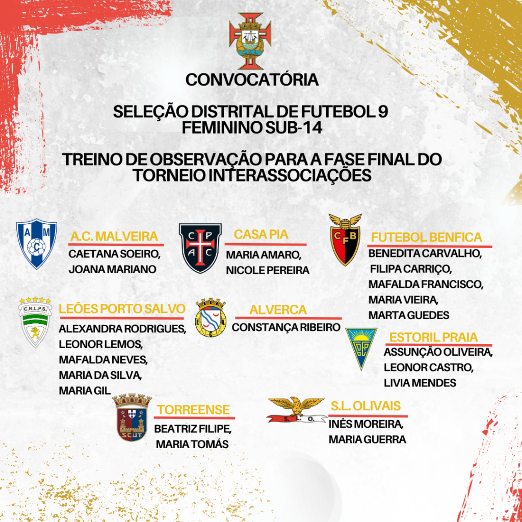 As convocatórias para as Seleções Distritais de Futsal Masculino Sub 13, Futebol 11 Feminino Sub 16 e Futsal Feminino Sub 17 já se encontram disponíveis.